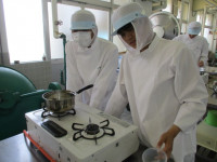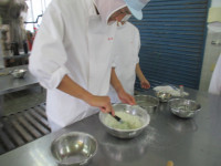 3年生総合実習でムクナ豆の活用に取り組んでいます。今日は冷凍保存していたヨモギのペーストも使いクッキー製造をしました。薄い緑色の焼き色がついたものが出来上がりました。味は普通かな?これから応用に頑張ります。