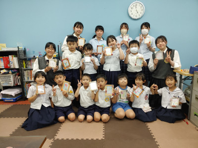 今回はフレームアート制作をしました!みんなで花をお絵描きして、フォトフレームに入れて、フレームの周りを花材で装飾しました!2回目の活動とあって、楽しくお話ししながら、お花の魅力を伝えることができました!