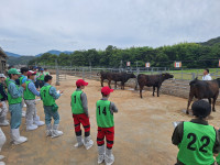 家畜審査競技会は、乳牛の部と肉牛の部があり、それぞれ4頭の成畜(オトナの牛)と幼畜(子牛)を並べ、順位付けをします。