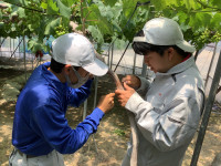 ブドウの環状剥皮と摘粒(園芸流通科3年生総合実習果樹専攻)